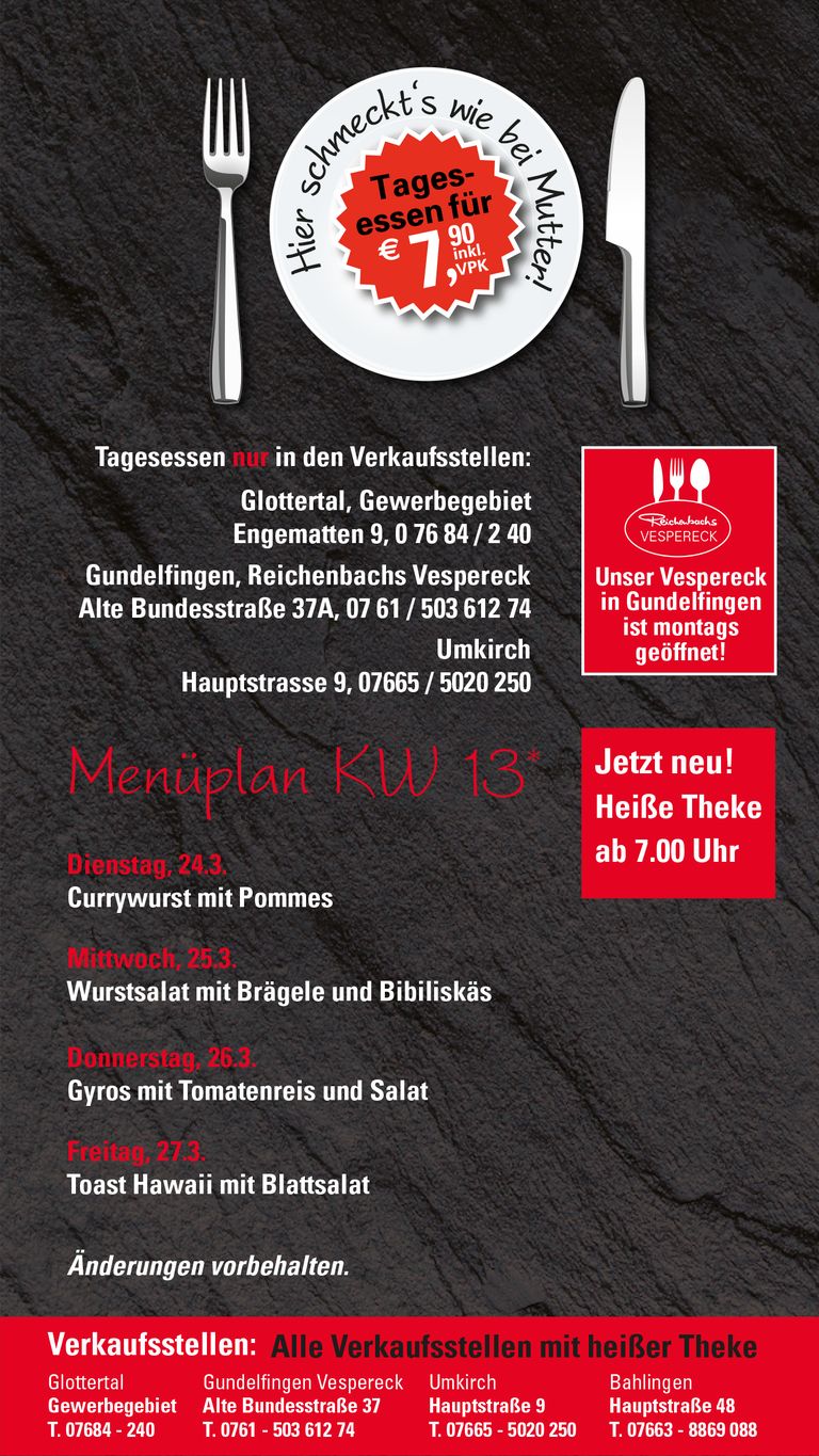 Tagesessen – täglich frisch in unseren Filialen, gekocht wie früher bei Mutter.