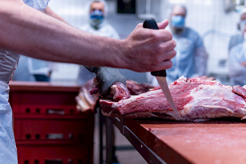 Für die Wurstherstellung verwenden wir besonders gut marmorierte Teilstücke wie Schulter und Bauch. Diese sorgen für die typische Saftigkeit und den intensiven Geschmack unserer Schwarzwälder Wurstspezialitäten.