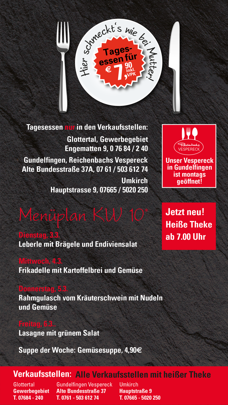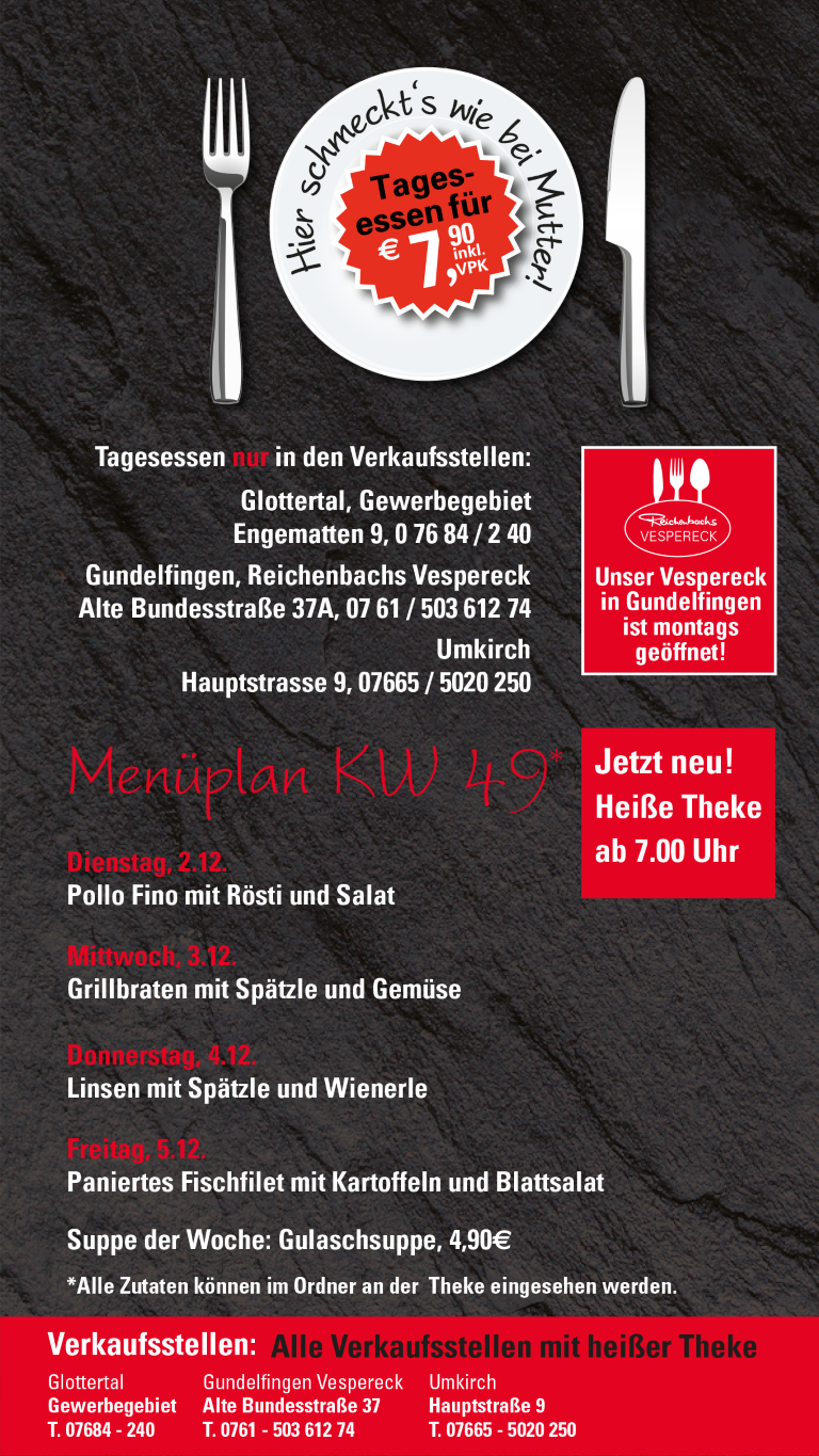 Tagesessen – täglich frisch in unseren Filialen, gekocht wie früher bei Mutter.