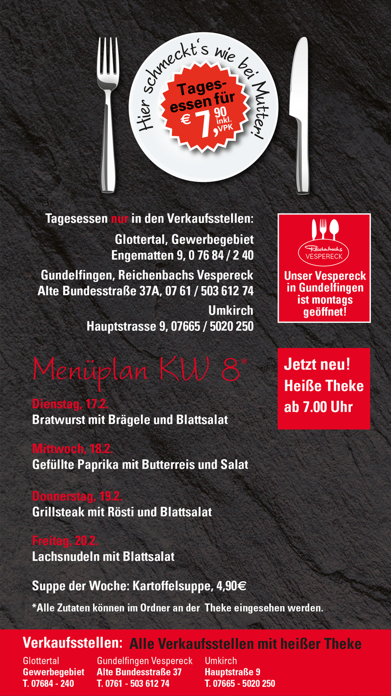 Tagesessen – täglich frisch in unseren Filialen, gekocht wie früher bei Mutter.